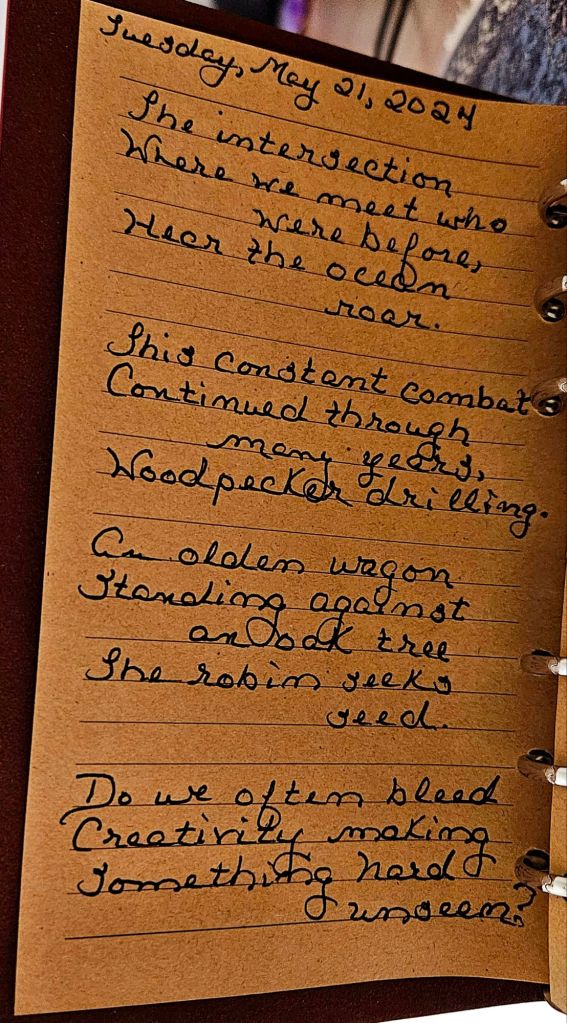“Tiller stops at edge of clearing, enough acreage to allow the land to grow. The farmers know the way to lay out the space, to make it productive. “ Productive of what, Sharon wondered. Launching lust, hands all over. Enough of that. Thought leads nowhere.